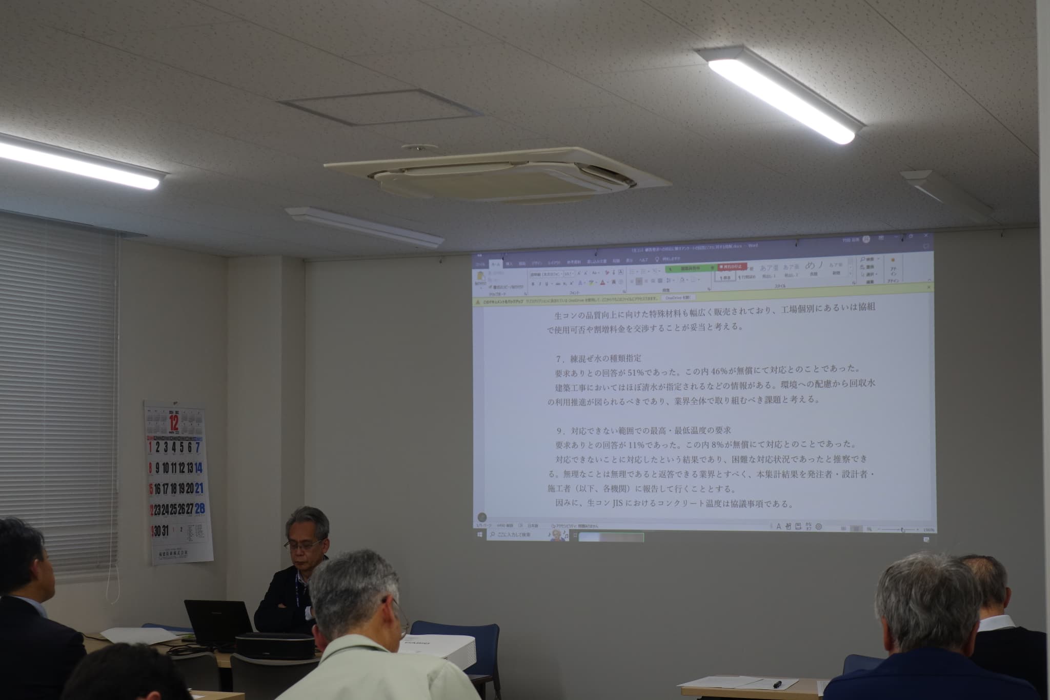 参加者20名(WEB参加を含む)で広島工業大学環境土木工学科の竹田宣典教授を主査として開催された。今回は、現在の生コン工場の顧客の要望の在り方について議論が行われ、工事の発注者、生コンを発注する施工会社との話し合いの重要性について、意見交換が行われた。次回は、打ち継ぎの合理化について情報を整理して議論することになった。